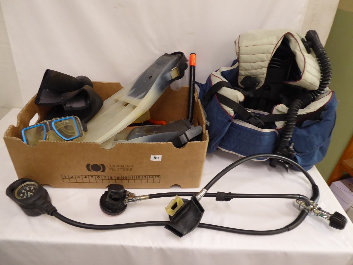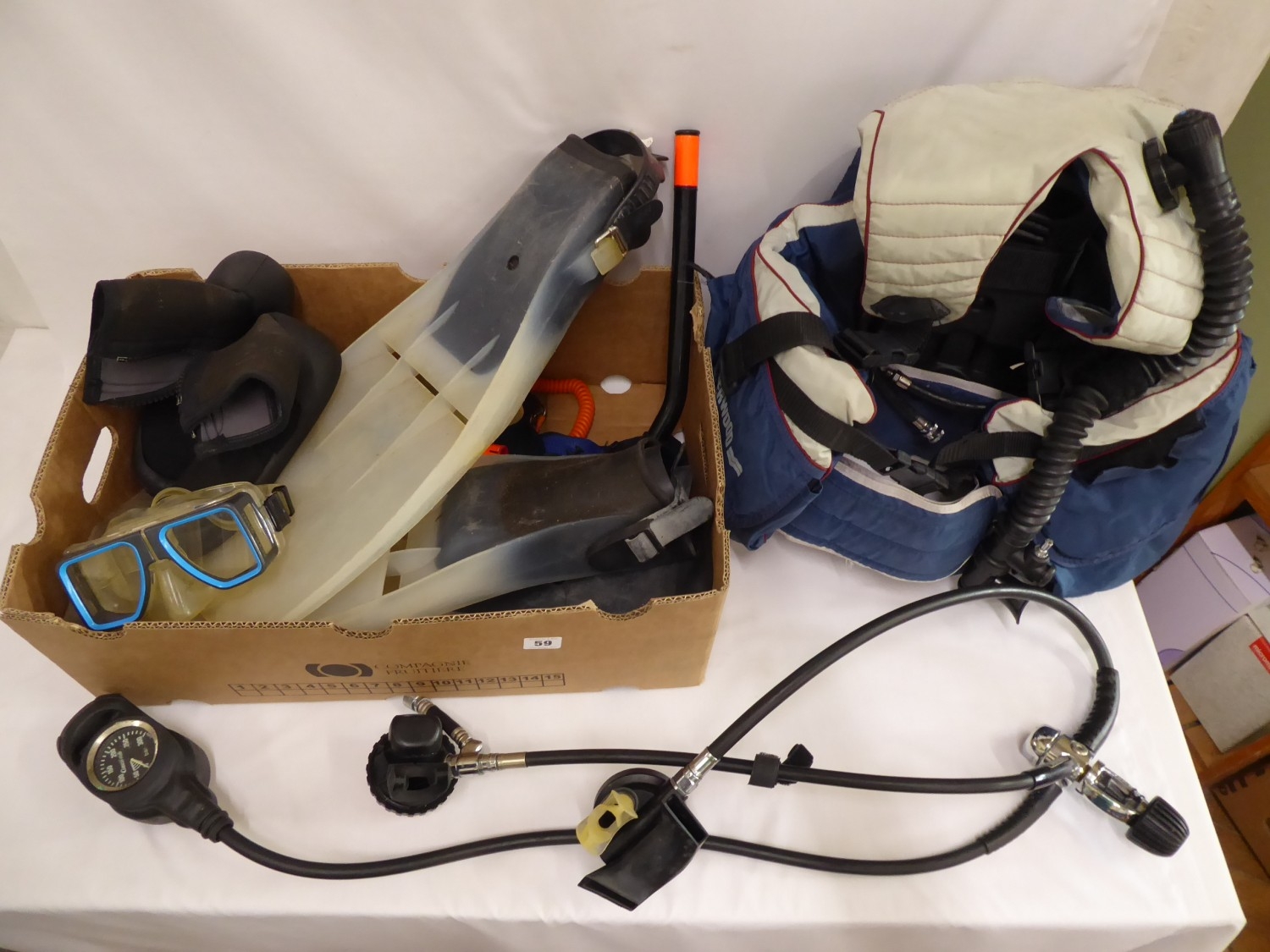 Scuba diving gear - Sherwood scuba buoyancy control device, flippers etc.