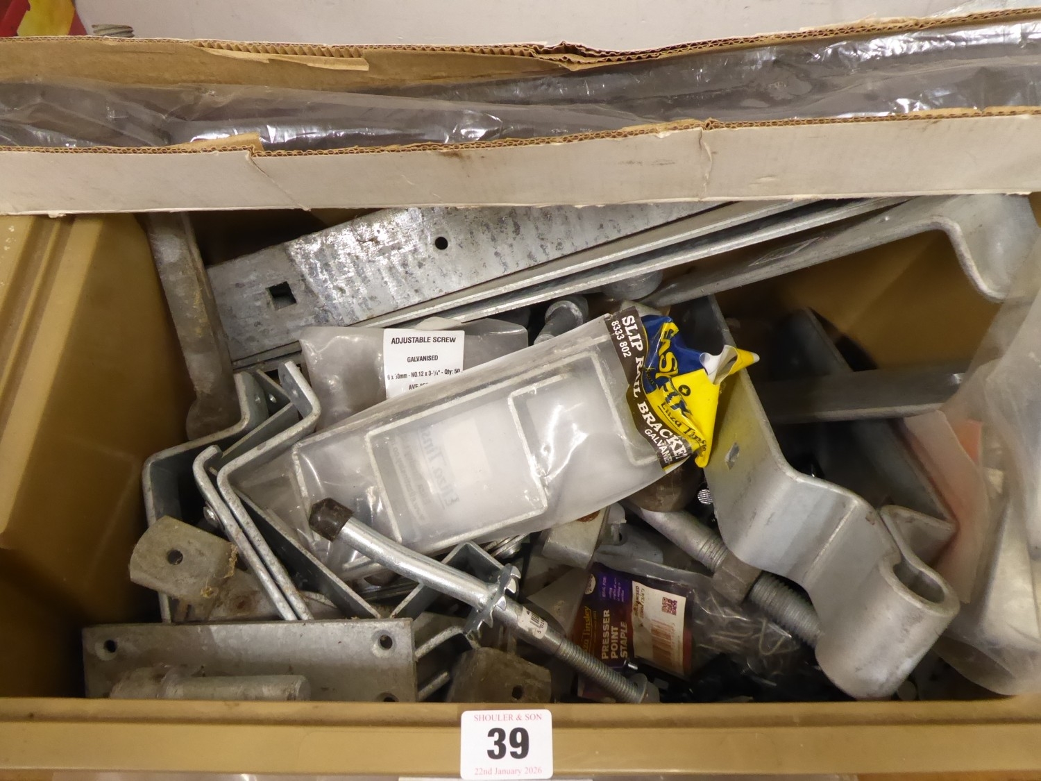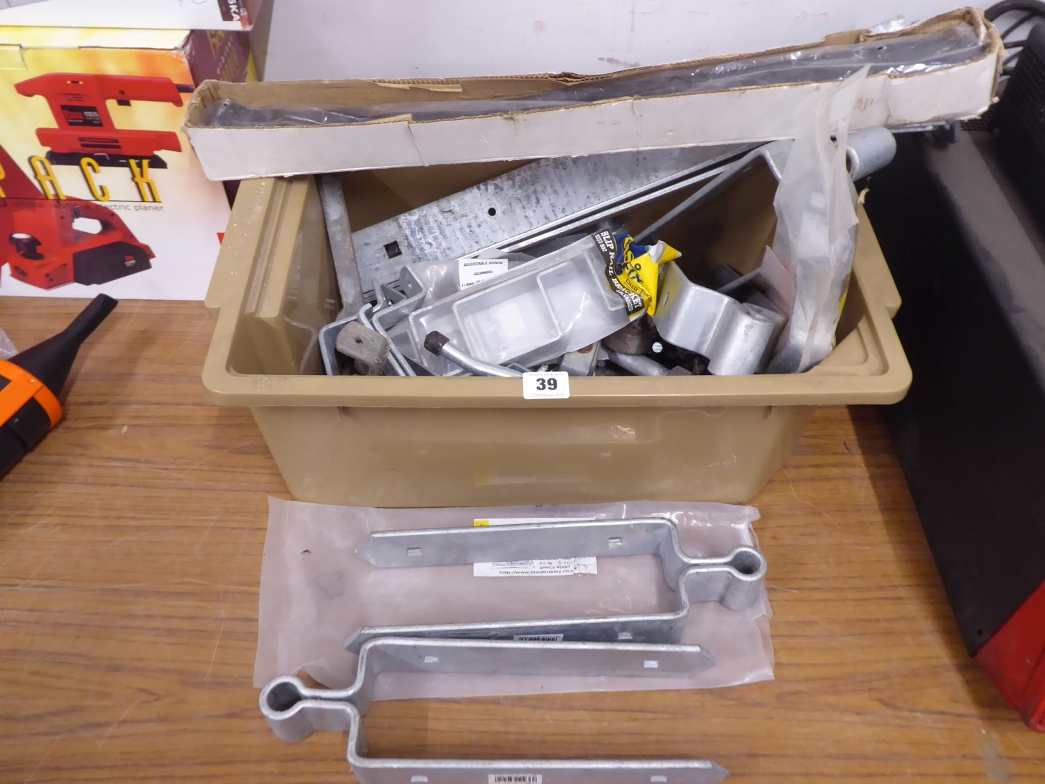 Quantity galvanised field gate hinges, brackets etc.