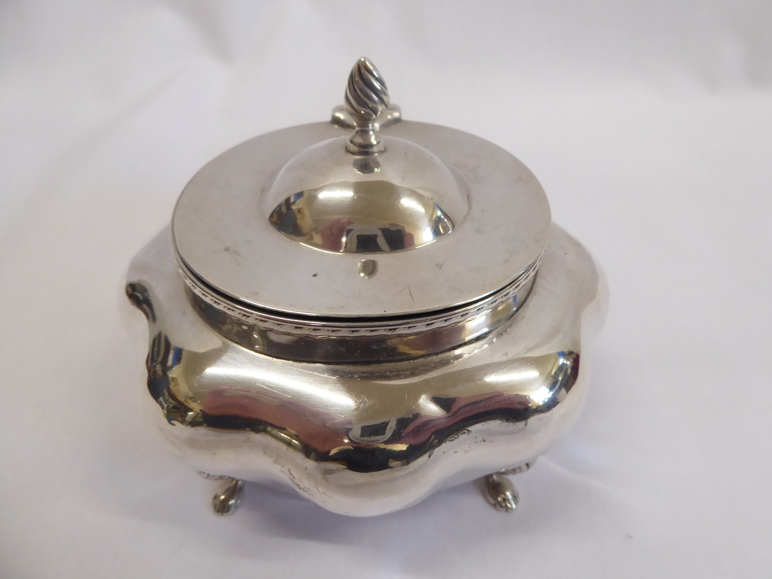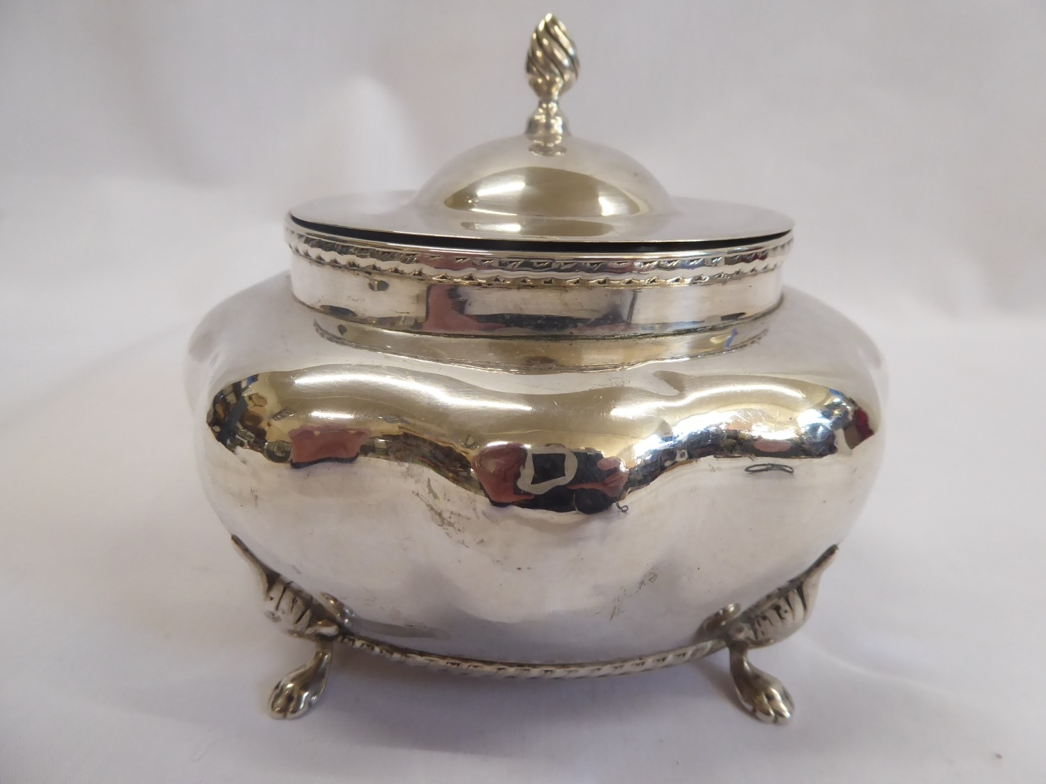 Shaped silver caddy on lion paw feet - Birmingham 1898