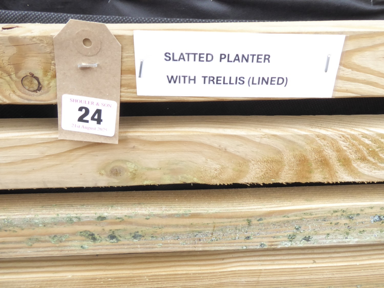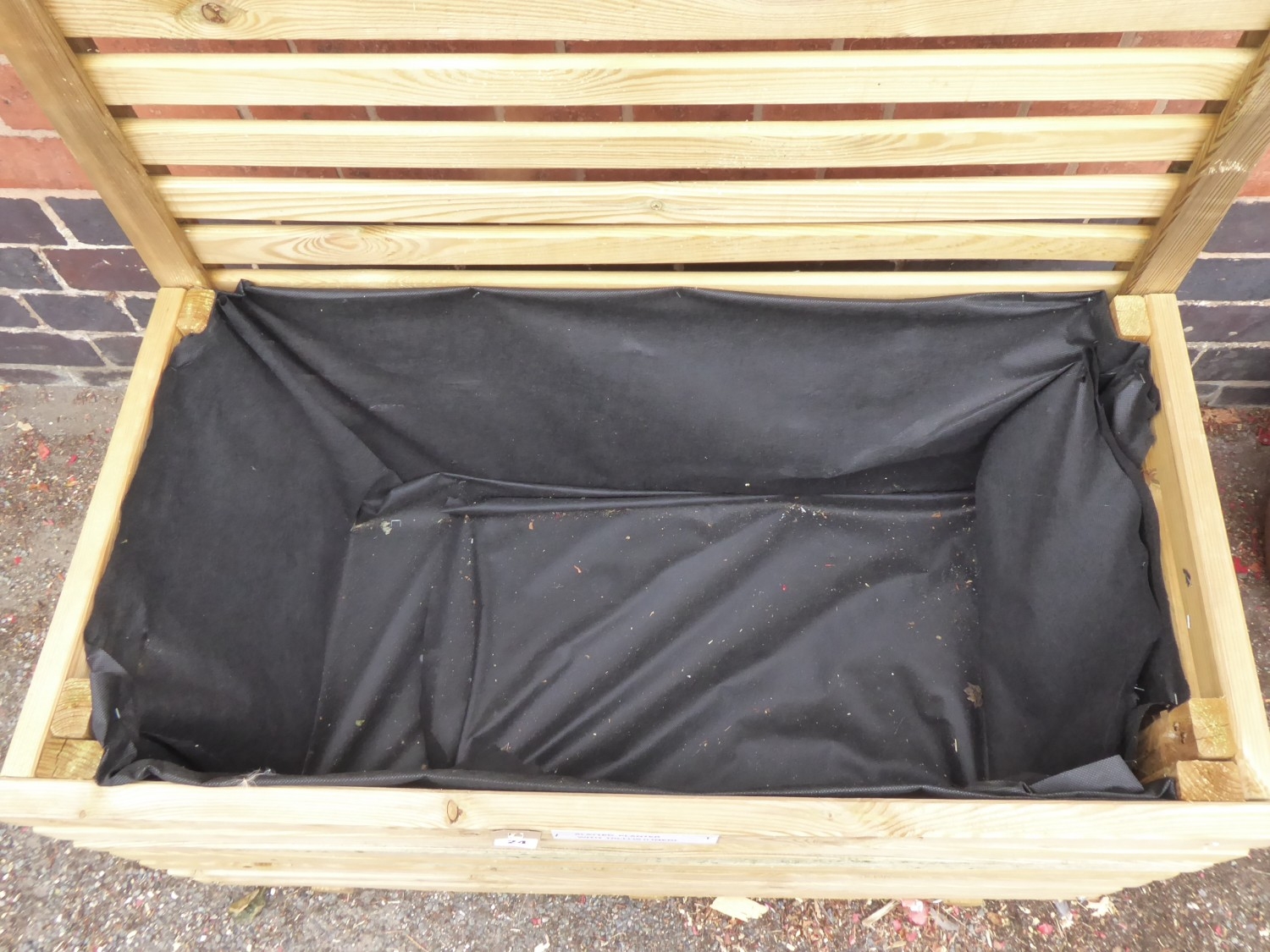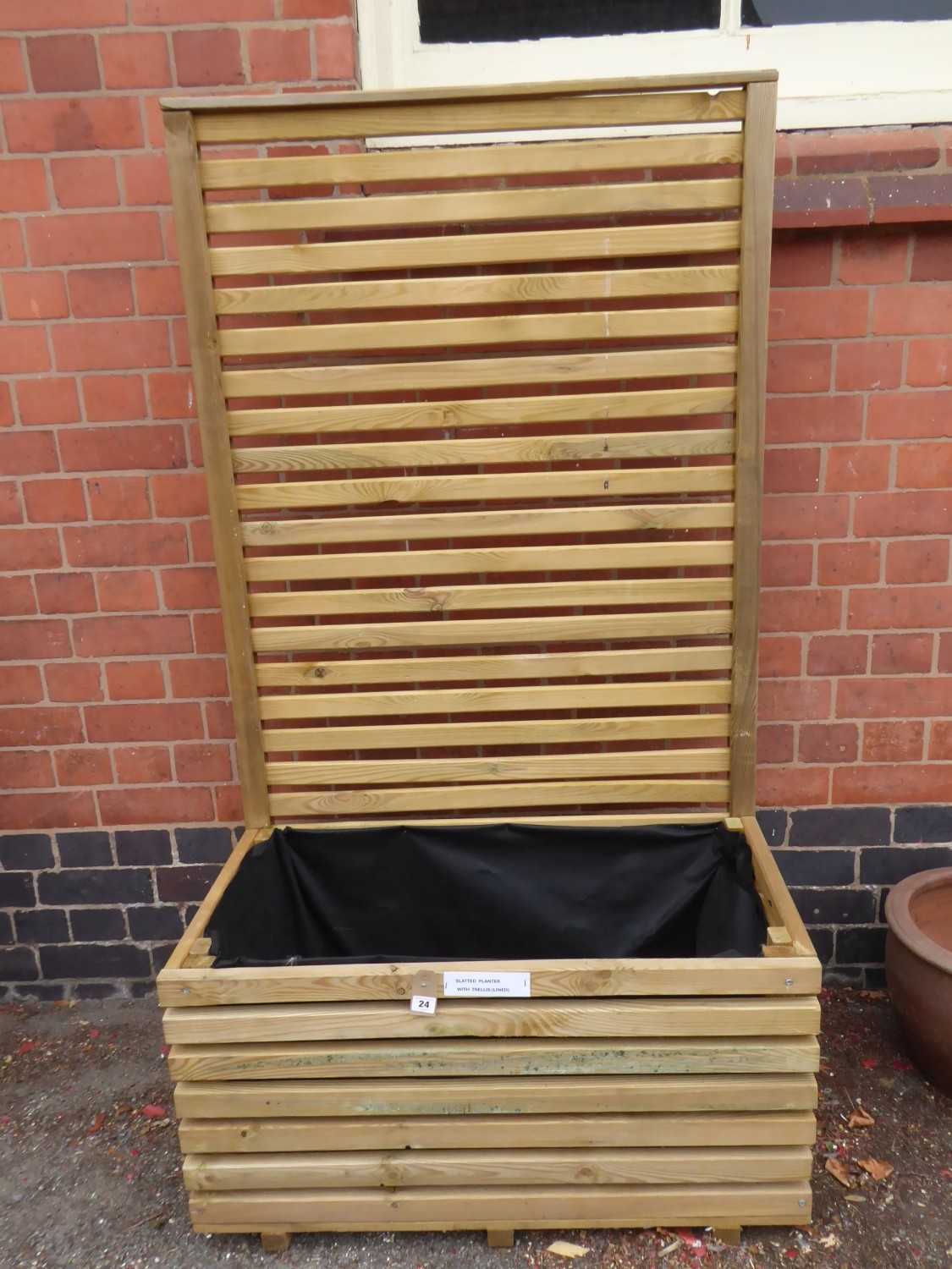 Wooden slatted lined garden planter with trellis (1625 x 900...