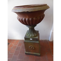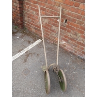 Zinc garden butlers trays on folding metal stands (2) and circular herb planter