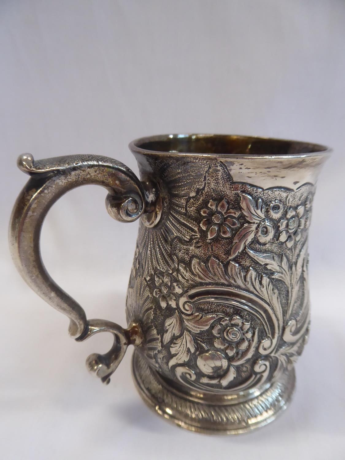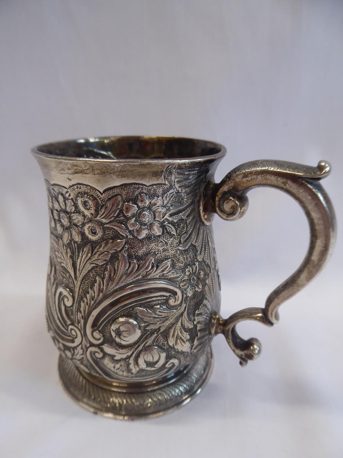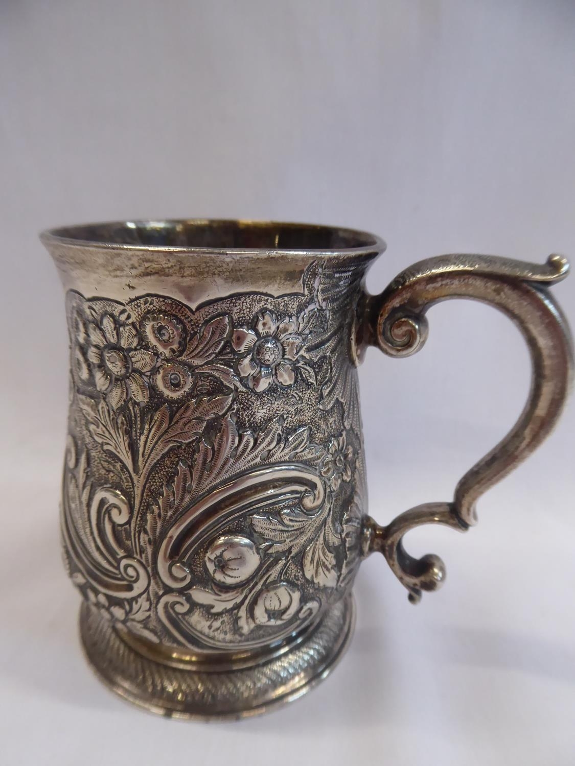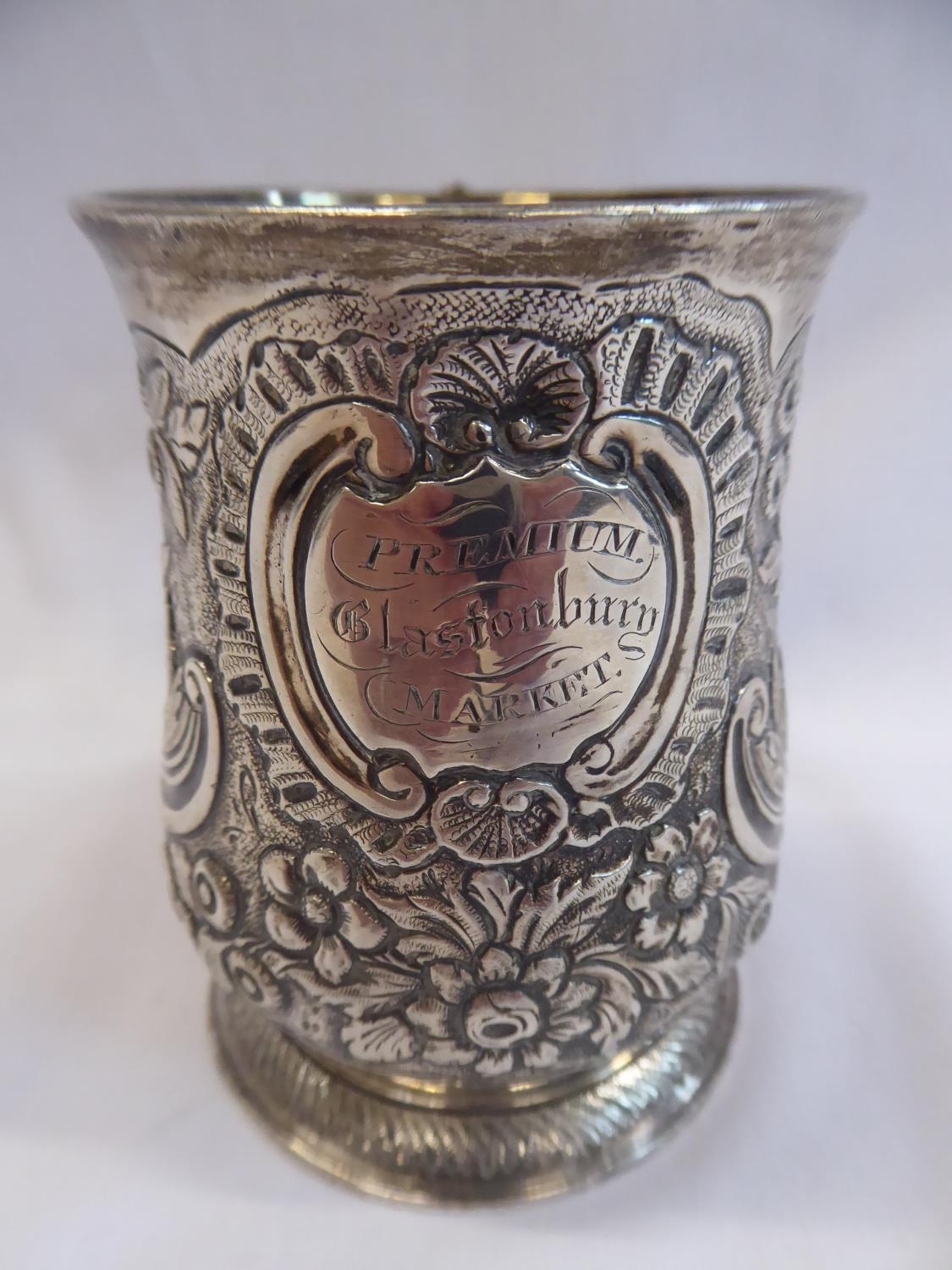 Embossed silver tankard - by Richard Gurney and Thomas Cook, London 1953 - engraved Glastonbury Premium Market (6.7 ozt)