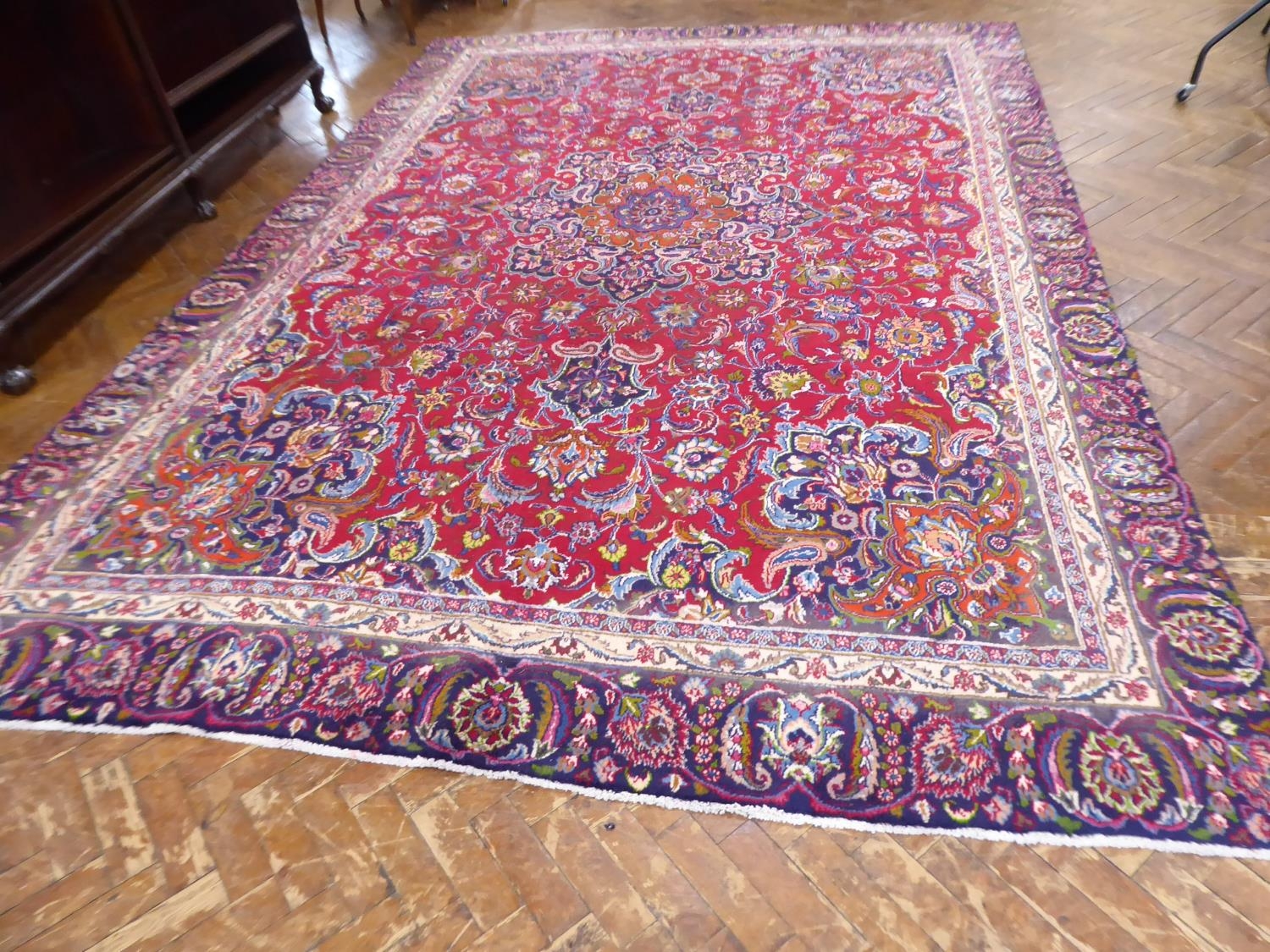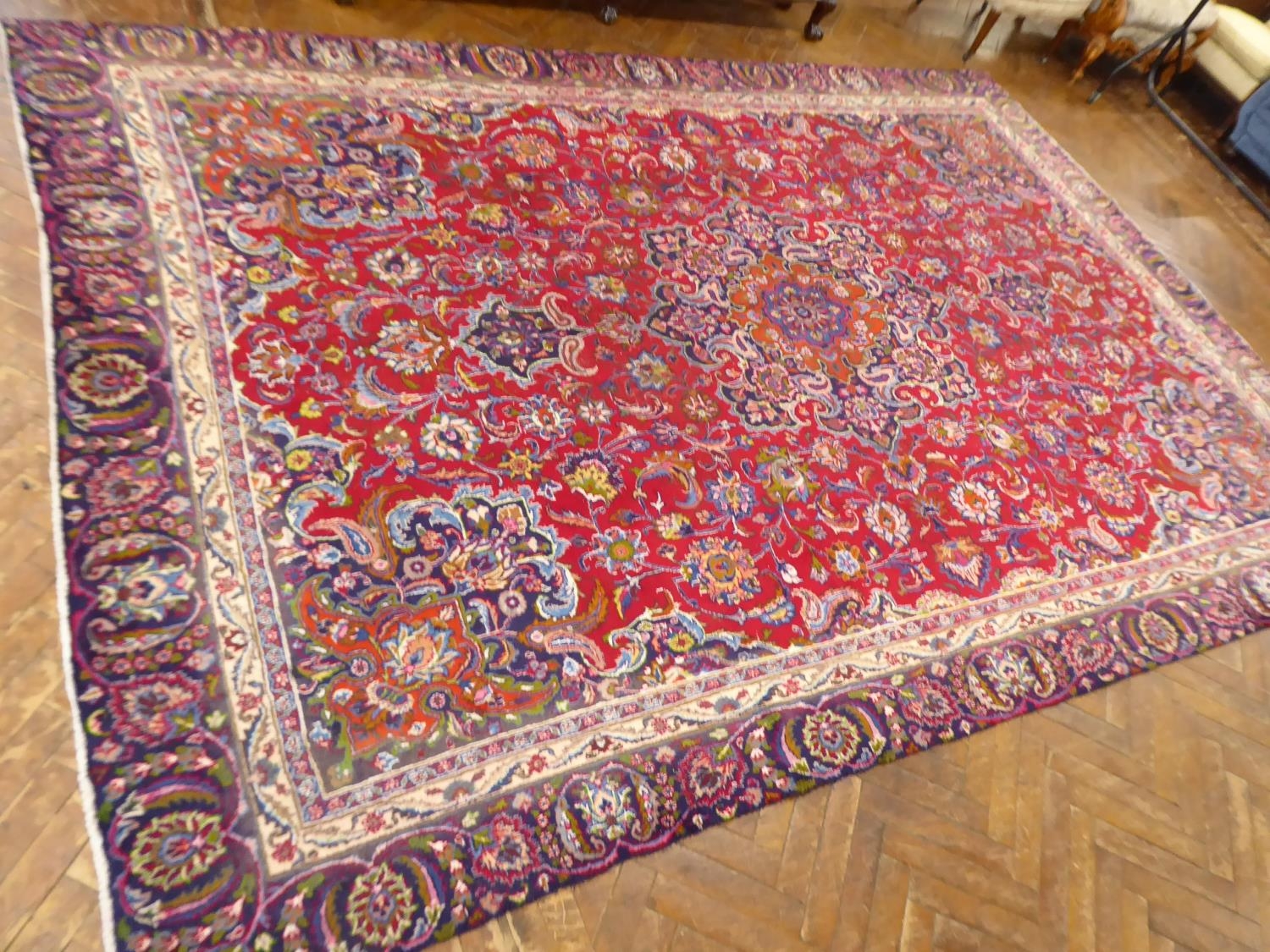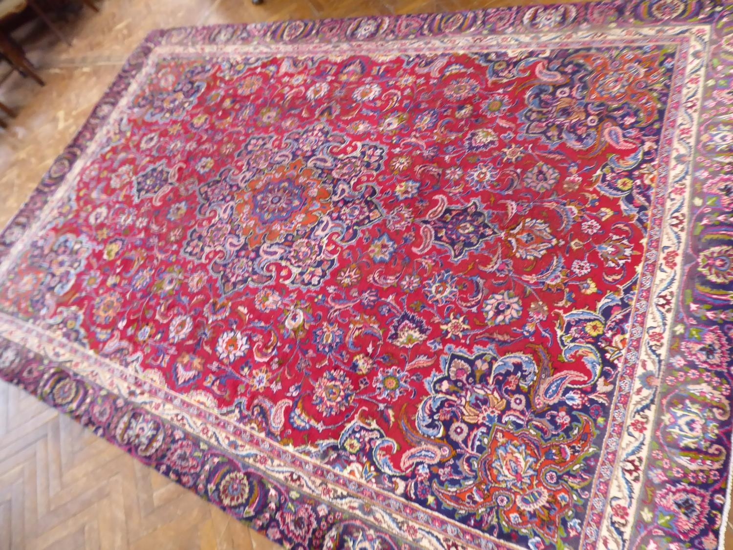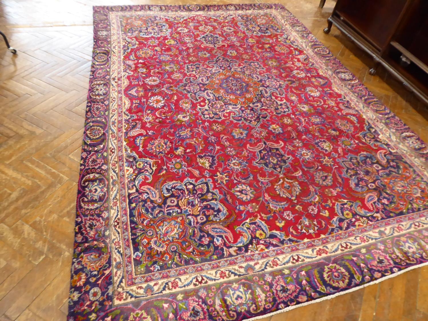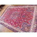 Red and blue ground Persian Mashad carpet (151" x 102" )