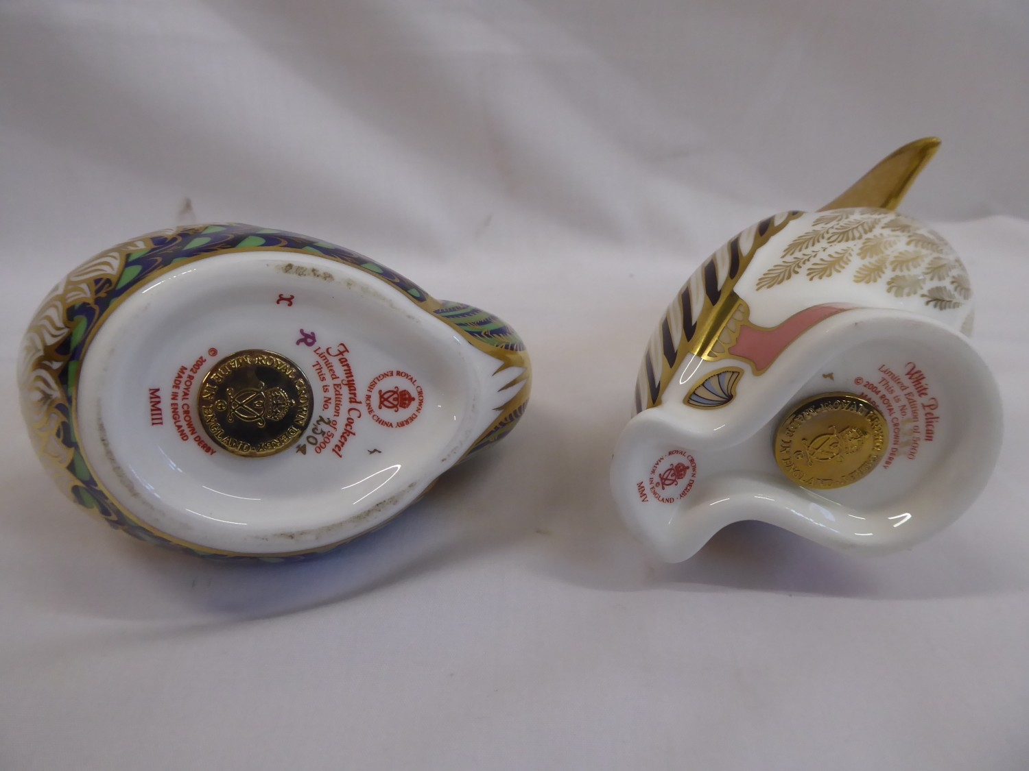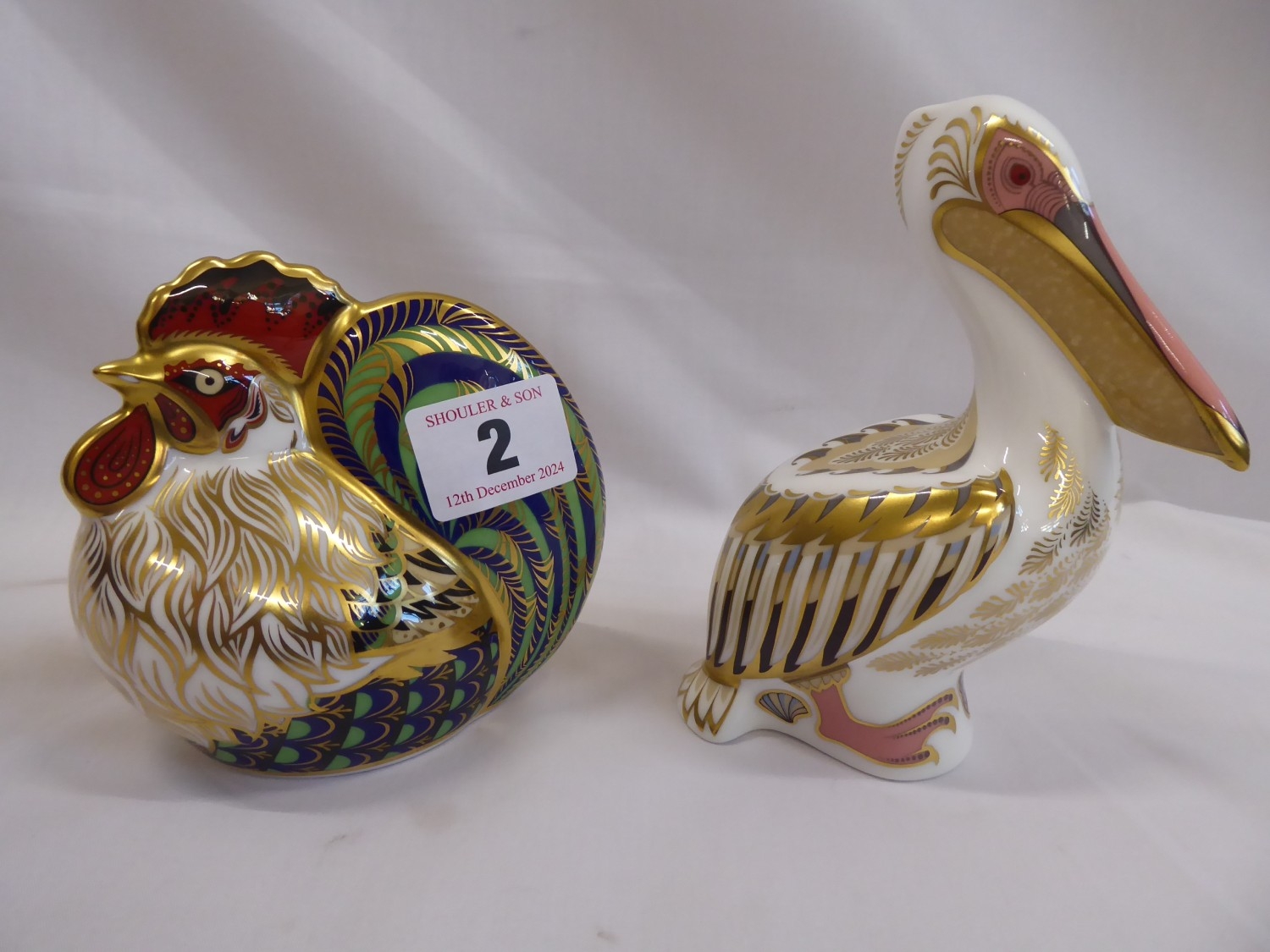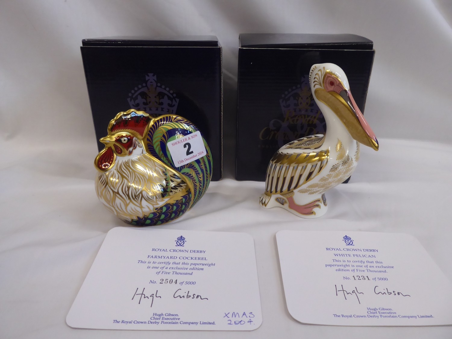 Royal Crown Derby paperweights limited edition event pieces - white pelican, cockerel (2)