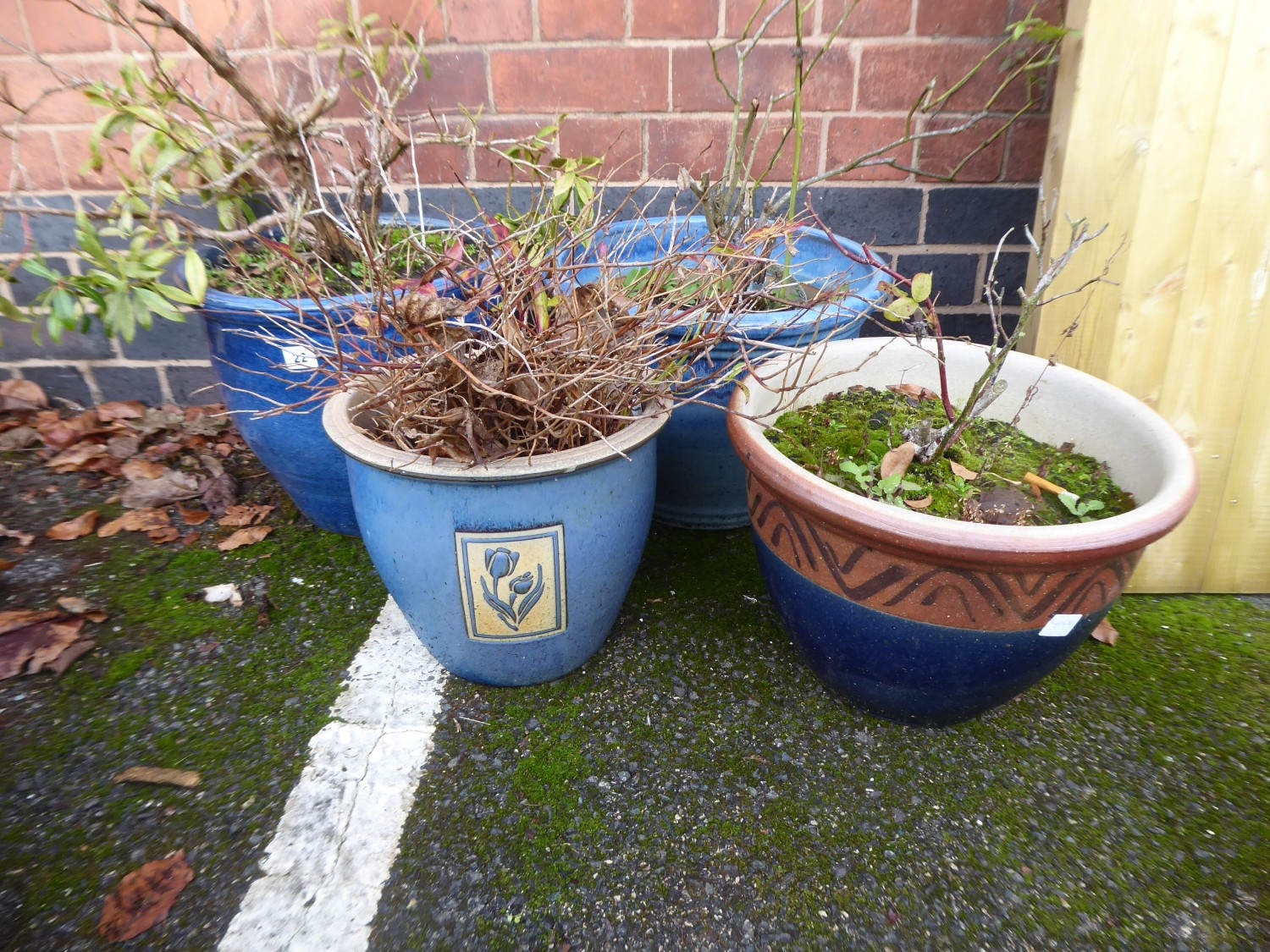 Blue glazed garden planters (4)